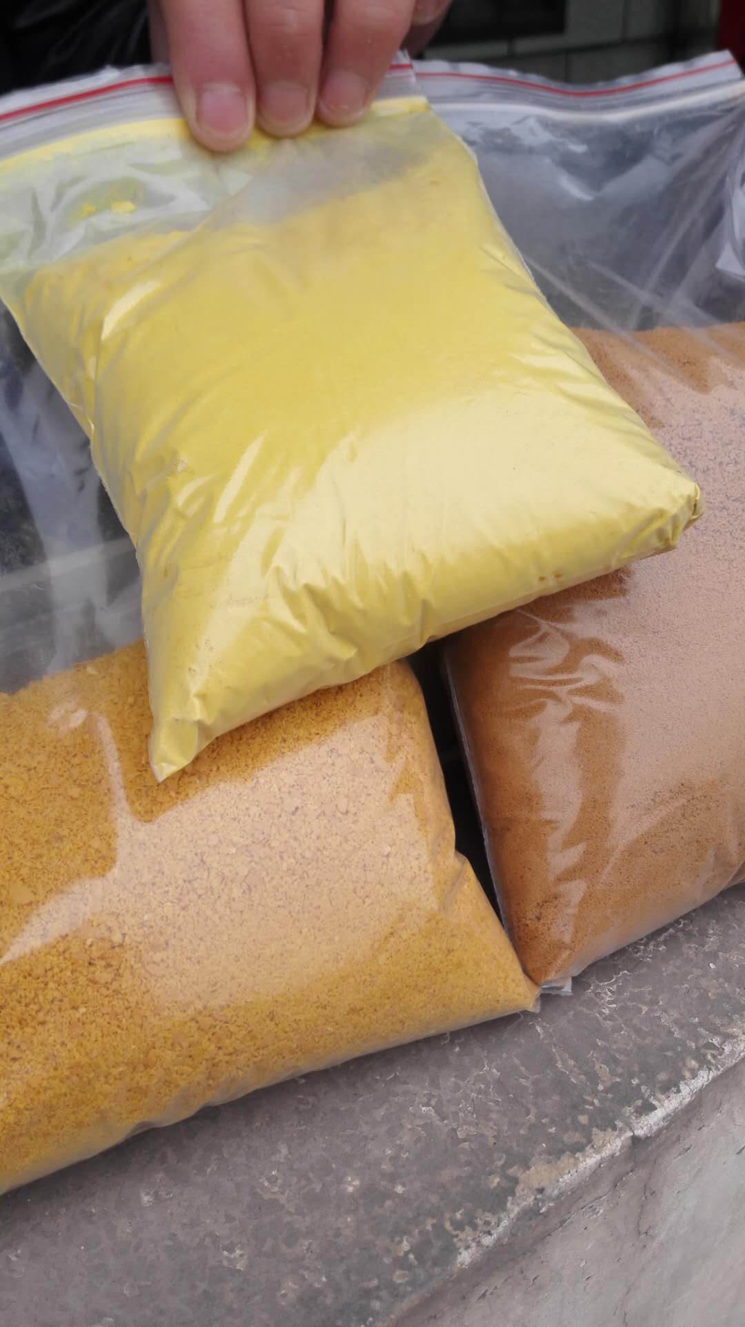 聚合氯化鋁的顏色有很多種,如黃褐色、灰黑色、灰白色、白色、黃色、棕褐色等等,之所以呈現(xiàn)出不同顏色,是因為其生產原材料和工藝所決定的,如:棕褐色聚合氯化鋁是以鋁酸鈣粉、鹽酸、鋁礬土還有鐵 粉作為原料的,因為鐵粉的緣故而呈現(xiàn)棕褐色,鐵粉添加的越多顏色將越深,顏色也是判斷聚合氯化鋁質量的一種方式,一般來說,顏色越淺,價格越高,因為所含有的雜質少,除此之外,聚合氯化鋁的色澤還受鹽基度的影響。在形態(tài)上,聚合氯化鋁呈現(xiàn)液態(tài)和固態(tài)兩大類。在這里主要介紹下固體聚合氯化鋁,固體聚合氯化鋁的形狀會隨鹽基度的變化而變化,鹽基度在30%以下為晶體,在30%-60%為膠狀物;在60%以上變?yōu)椴Aw或樹脂狀,在70%以上時不易潮解,而在70%以下易吸潮并液化,不便保存,但是潮解了之后,只要在保質期內,依然是可以使用的。